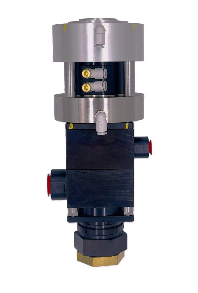 Swivel-equipped two-component manifold gun The two liquids, the base agent and the hardener, are mixed at the tip of the gun and then discharged from the nozzle.